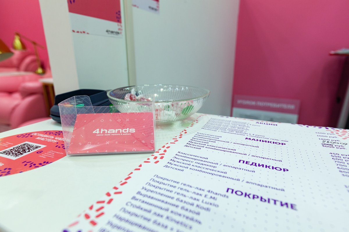Была пару раз в студии, в последнее обращение делала маникюр с покрытием. Процедура заняла по времени примерно 1,5-2 часа, я делала однотонное покрытие без дизайна. Мастер - девушка с тёмными волосами. В большинстве случаев, когда я делаю маникюр, то мне режут кутикулу, мне понравилось, что при обращении в 4hands этого не было. Мастер очень грамотная, вежливо ко мне относилась. Рабочее место аккуратное, меня предупредили, что инструменты будут в крафт пакетах. На процедуре чувствовала себя очень хорошо. В студии уютно, классные сериалы показывают. Администратор отличный, даже когда я переносила запись, то относилась ко мне с пониманием, никаких казусных ситуаций не возникало. Я увидела большую рекламу студии на входе в ТЦ Avenue Southwest и решила пойти.